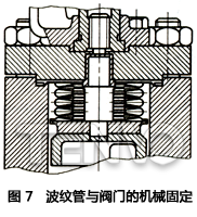隨著化工、核工業(yè)等現(xiàn)代工業(yè)的迅速發(fā)展,易燃、易爆、劇毒和帶放射性介質(zhì)的管道日益增多,用于這些管道和裝置上的閥門,對它們的外漏密封有特殊嚴格要求,使用一般的填料密封裝置已滿足不了要求,因此,需要采用帶波紋管的閥桿密封結(jié)構(gòu),如圖1所示。波紋管一般采用滾焊或氬弧焊與閥蓋上的凸緣或其他零件連接在一起。波紋管連接的結(jié)構(gòu)設(shè)計一般如下所述。