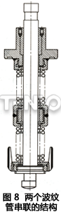 當(dāng)一個波紋管的行程不夠大時,可采用兩個或多個波紋管串聯(lián),如圖8所示。