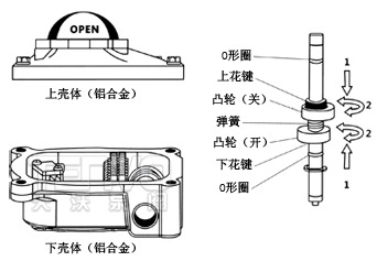 2、隨意轉(zhuǎn)動凸輪調(diào)整所需的位置,調(diào)整后松開凸輪,確認凸輪已經(jīng)被彈簧彈回復位嚙合。