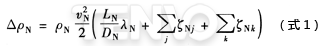 在一個直徑為DN的導管中,其壓力損失△ρN的計算式如下: