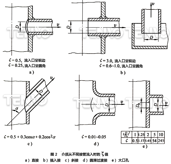 (1)導管的流人和流出當容器與導管連接的時候,導管被安裝在容器的出口或入口上,或者把導管的一頭插入罐內(nèi)引出導管,見圖2和圖3。圖中已給出各種情況下的ζ值。