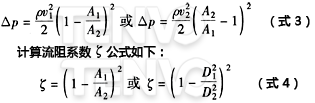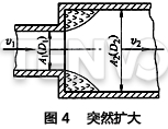 1)突然擴大。如圖4所示,如果壓力損失主要是由于流通截面Al突然擴大,其計算公式如下: