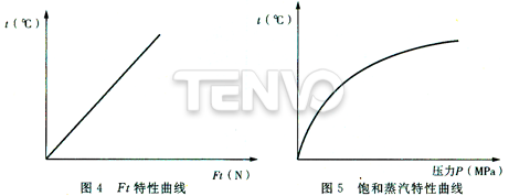 由公式(1)可知Ft=K·E·△t·α,對于已選定的熱雙金屬材料,式中K、E值均是常數(shù),如果元件的形狀已經(jīng)確定則值亦為一定值。因此Ft只是溫差△t的函數(shù)。用曲線表示如圖4。