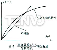 根據(jù)蒸汽的熱力學(xué)特性可得到蒸汽的飽和溫度與壓力的特性曲線,如圖5。從圖中可知該曲線為二次曲線而前面所提到的Ft曲線如圖4所示為一直線。如果將兩條曲線綜合到同一坐標(biāo)系中可得到圖6。從該圖中可發(fā)現(xiàn)兩曲線相差甚遠(yuǎn),雖然在某個壓力點P上可以找到一個溫度t,對應(yīng)t存在一個Ft與Fk平衡,但這個t值與該壓力下蒸汽的飽和溫度tb相差太大,而且在疏水閥的整個工作壓力范圍內(nèi),排水溫度與飽和溫度的差值大小不同。如果按以上設(shè)想設(shè)計該產(chǎn)品,則產(chǎn)品性能將極不穩(wěn)定,起不到節(jié)能的作用。要解決這一問題必須設(shè)法改變Ft曲線使之接近飽和蒸汽曲線。而要改變Ft曲線就必須從熱金屬的體積系數(shù)α入手。