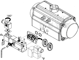 在安裝執(zhí)行機(jī)構(gòu)前,應(yīng)根據(jù)閥的功能不同(常閉,3/2或5/2)將連接板正確安裝到電磁閥