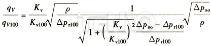 假設(shè)不改變流動方式,而且介質(zhì)是不可壓縮的。對于閥門完全打開的位置,即當(dāng)變量(qv,△pr,△pL,Kv)取下角標(biāo)100時,則可寫成下式: