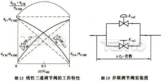 圖13示出并聯(lián)調(diào)節(jié)閥的安裝圖。對(duì)于這樣的系統(tǒng),系數(shù)之間關(guān)系如下: