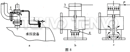 當(dāng)重閉式壓力釋放裝置——壓力釋放閥是以導(dǎo)閥脈沖信號(hào)控制大排量主釋放裝置為特征時(shí),是一種脈沖式安全閥,一般適用于大排放量的超壓保護(hù)。