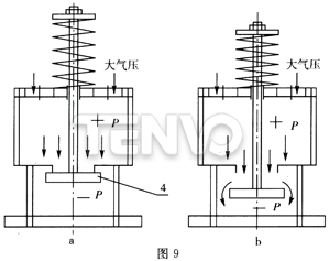 設(shè)彈簧作用力為F,如圖9a所示,經(jīng)受力分析,確定負(fù)壓整定壓力的關(guān)系式