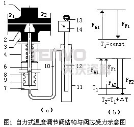 1、液體膨脹型自力式溫度調(diào)節(jié)閥工作原理與閥芯的受力分析