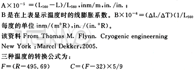 @A是凈收縮率系數(shù),也就是說A是從基本溫度560°R變化到上表中的任意溫度時長度上的變化