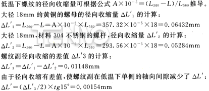 3.3 計算低溫下軸向收縮對螺紋副軸向間隙的影響