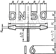 (2)標志的標記式樣公稱尺寸數(shù)值標注、壓力代號或工作壓力代號、流向標志、應(yīng)按規(guī)定的組合式樣,公稱尺寸數(shù)值標注在壓力代號上方。