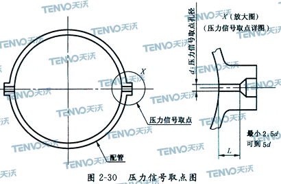 2)壓力信號取點的孔徑尺寸不得超過配管公稱尺寸的1/10,最小為1mm,最大為12mm。另外,原則上規(guī)定,進口和出口的壓力信號取點的孔徑尺寸應相同。