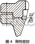 在某些情況下,亦可采用無墊片的剛性密封結構。如圖4所示。此時需求法蘭密封面有很高的平整度和很低的表面粗糙度Ra為0.2μm。