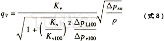 假設(shè)不改變流動方式,而且介質(zhì)是不可壓縮的。對于閥門完全打開的位置,即當(dāng)變量(qv,△pr,△pL,Kv)取下角標(biāo)100時,則可寫成下式: