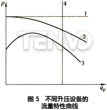 圖4還表示了當(dāng)Ψ=1時的升壓設(shè)備特性曲線,即圖中虛線。因為在po=常數(shù)時,△Psi=0。這種情況有時會在實踐中遇到,即當(dāng)調(diào)節(jié)閥被安裝在兩罐之間,而罐的壓力保持常數(shù)的情況。圖5中的特性曲線1對應(yīng)于這種情況。