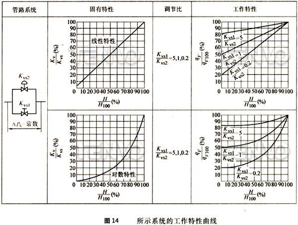 圖13示出并聯(lián)調(diào)節(jié)閥的安裝圖。對(duì)于這樣的系統(tǒng),系數(shù)之間關(guān)系如下: