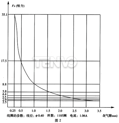從圖3看出,對于同一小孔直徑、同一環(huán)形縫隙,相應(yīng)都存在某一氣隙腔壓力P1,在這個壓力下,氣隙腔從小孔流出的氣體與從環(huán)形縫隙流進氣隙腔的氣體流量相等,這就是流量平衡點的壓力。對于同一小孔直徑,環(huán)形縫隙大,平衡點的壓力就高;環(huán)形縫隙小,平衡點的壓力就低。對于同一環(huán)形縫隙,小孔直徑大,平衡點的壓力就低;小孔直徑小,平衡點的壓力就高,根據(jù)表1可以看出,只有平衡點的壓力P1小于臨,也就是P1<11.15MPa,活門才能打開,考慮到活門與導(dǎo)套間的摩擦阻力,活門打開時的P1,還應(yīng)比11.15MPa小得多。結(jié)合表2和表3,從圖3看出,當(dāng)小孔直徑d=0.5mm,環(huán)形縫隙h=0.100mm時,流量平衡點的壓力P1=10.645MPa<11.15MPa,當(dāng)小孔直徑d=0.4mm環(huán)形縫隙h必須小于O.075mm時流量平衡點的壓力P1=10.766<11.15MPa,從上分析看出,國外圖紙上小孔直徑0.4mm,環(huán)狀縫隙0.15~0.30mm是不合理的。根據(jù)電磁鐵的吸力公式